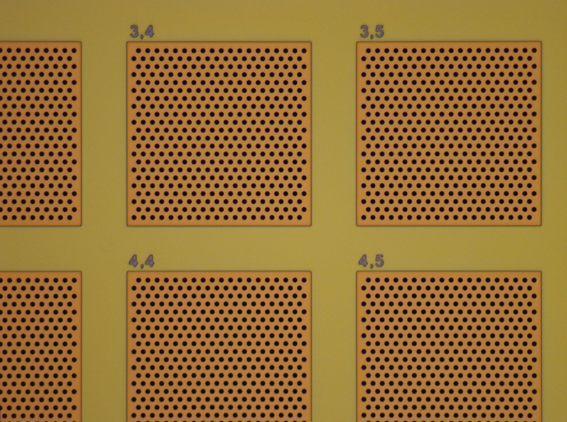 3 mm TEM grids with 2 um holes in a silicon nitride membrane. The membrane features imaging regions with a 100 nm membrane, supported by a 200 nm scaffold, for a large imaging area with high durability.