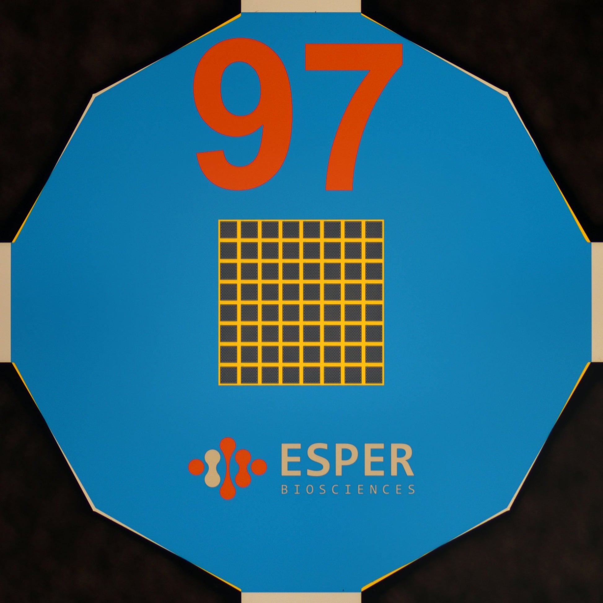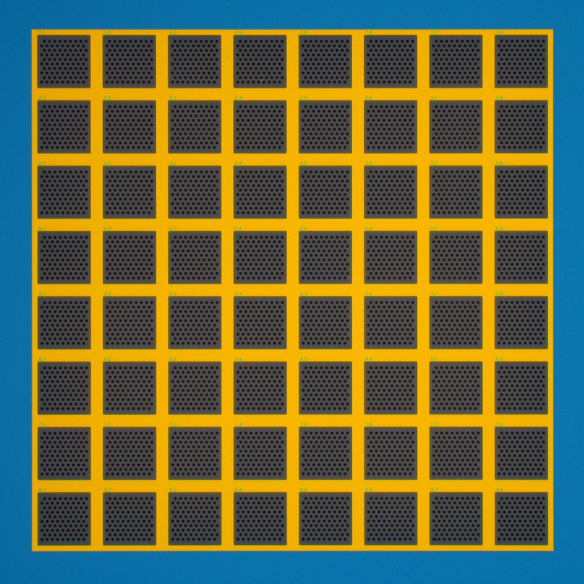 Each membrane is uniquely labeled with its coordinates, for ease of finding and recording sample location, and each grid has a large, unique, two digit ID, visible without a microscope to easily distinguish samples.