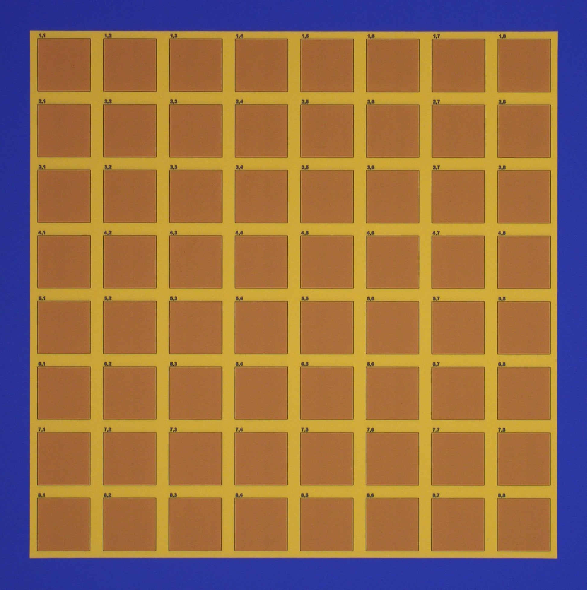 Each membrane is uniquely labeled with its coordinates, for ease of finding and recording sample location, and each grid has a large, unique, two digit ID, visible without a microscope to easily distinguish samples.