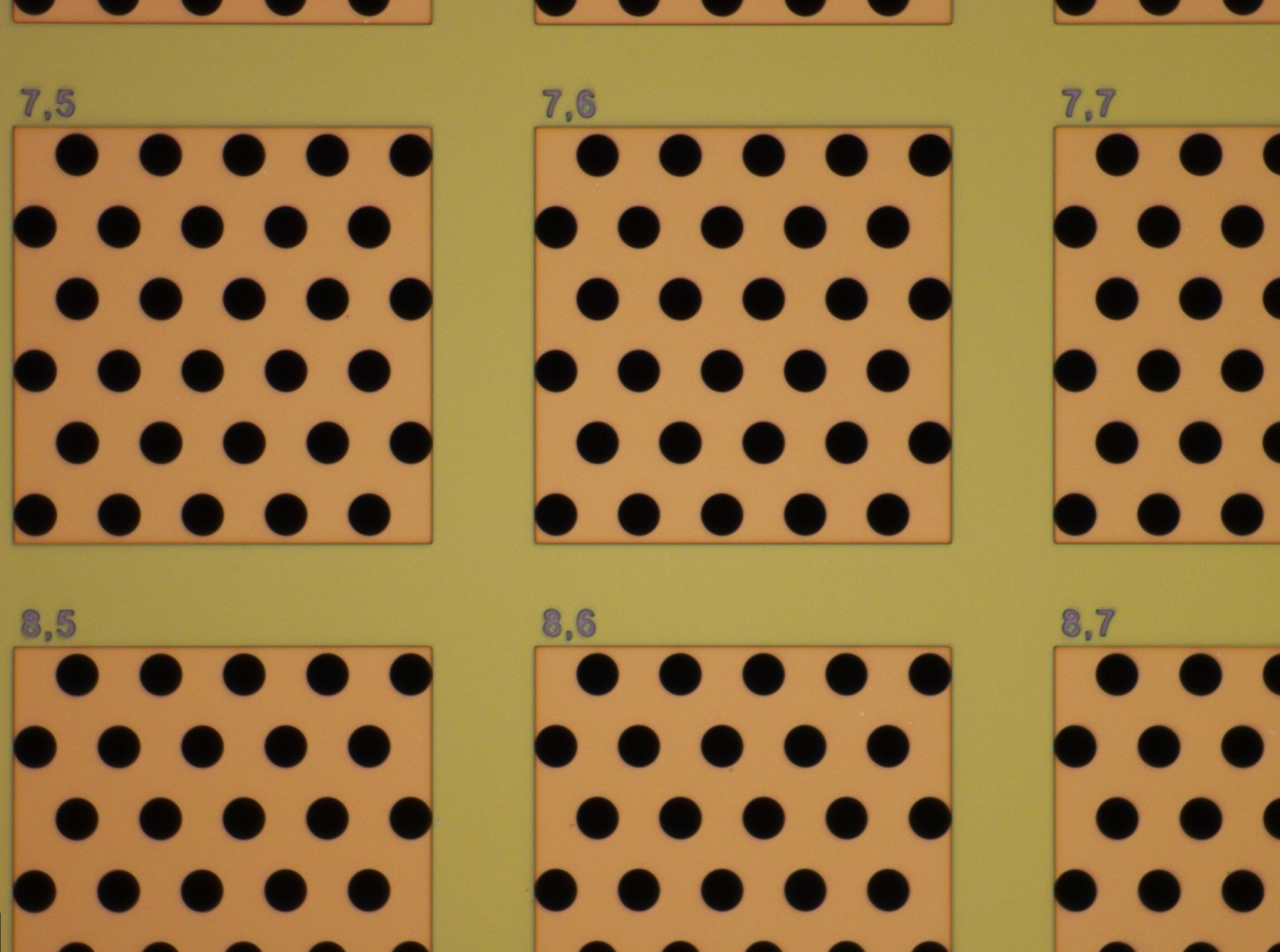 3 mm TEM grids with 8 um holes in a silicon nitride membrane. The membrane features imaging regions with a 100 nm-thick membrane, supported by a 200 nm-thick scaffold, for a large imaging area with high durability.